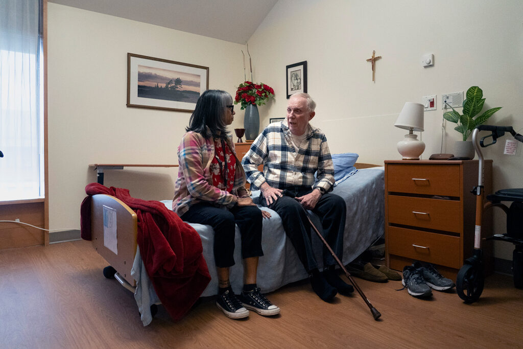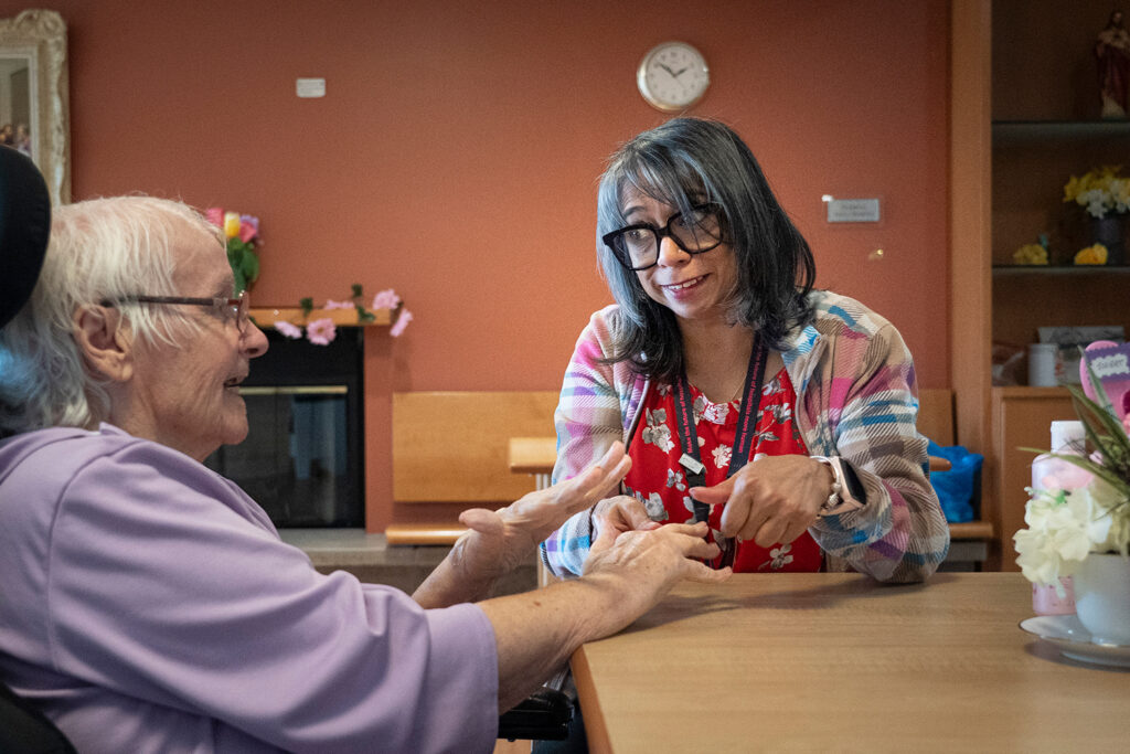 “Sometimes I have quite a line-up,” she laughs, as she gently begins rubbing lotion into the resident’s palms and forearms. Her famous massages and cheerful demeanor have made Dookie a favourite among those who call The Houses of Providence home.