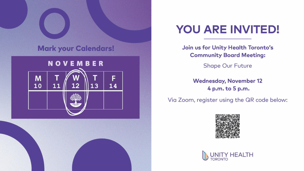 Contribute to Unity Health Toronto’s new Strategic Plan at our Community Board Meeting