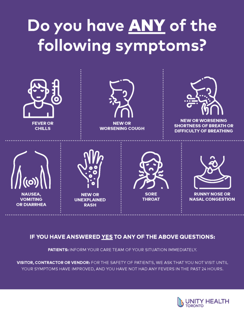 Even if symptoms are mild, it is safer to postpone your visit for when you’re fully recovered. Learn about the symptoms in the poster below to screen yourself for before visiting.
